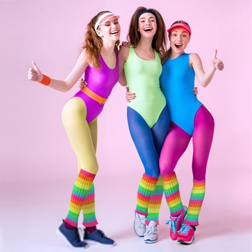 • Design Style: Soft and cozy women's knit leg warmers designed in bright neon colors with a bold 80's flair, perfect for women and girls party accessories!