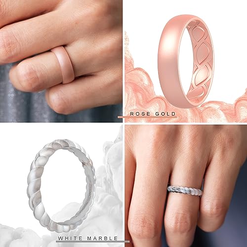 Silicone Rings Women, Ergonomic with Breathable Airflow Design - Multipack: 5 Breathable Wedding Bands, 5 Thin & Stackable Rings 4