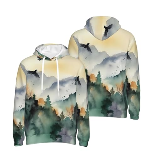 • Novelty Gift Idea: Mountain Birds Watercolor Print Hoodie Suitable For Men/Women/Ladies. It Can Be An Ideal Gift For Family And Friends, Especially Couples, And Partners; Great For Sport, Traveling, Doing Hip Hop, And Daily Wear, Halloween, Ugly Christmas, Parties, Or Stage Performances