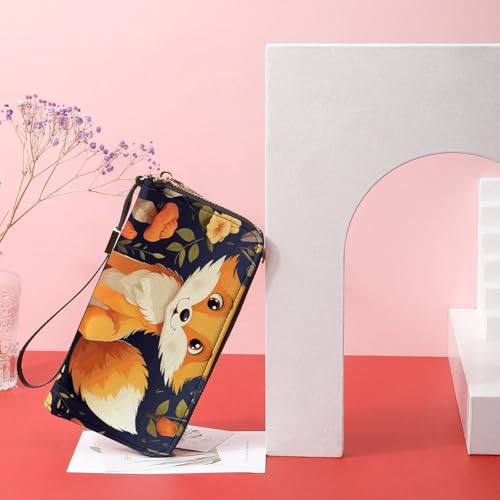 More information about Cute Animal Fox Flower Wristlet Long Wallet Womens Purse Zip Clutch Large Capacity Leather Purse Credit Coin Purse