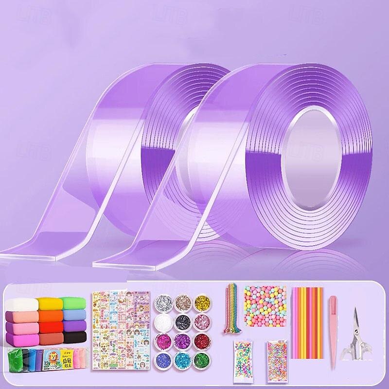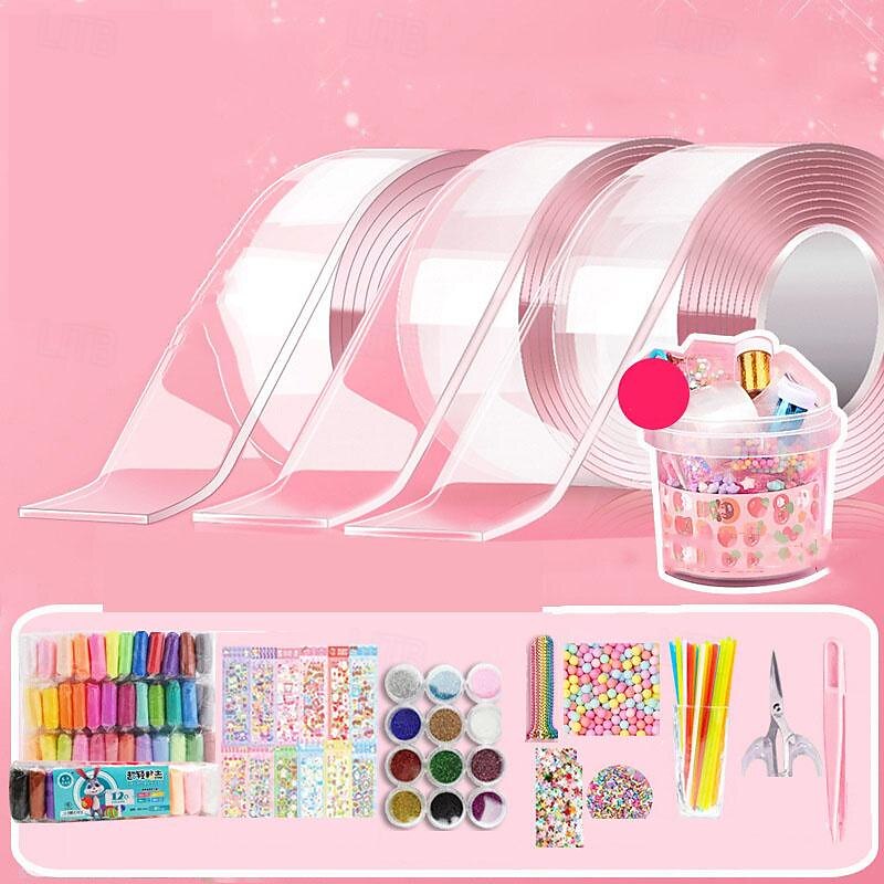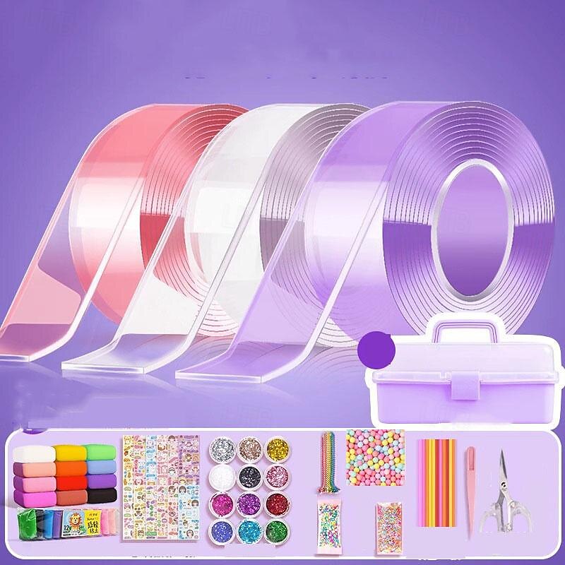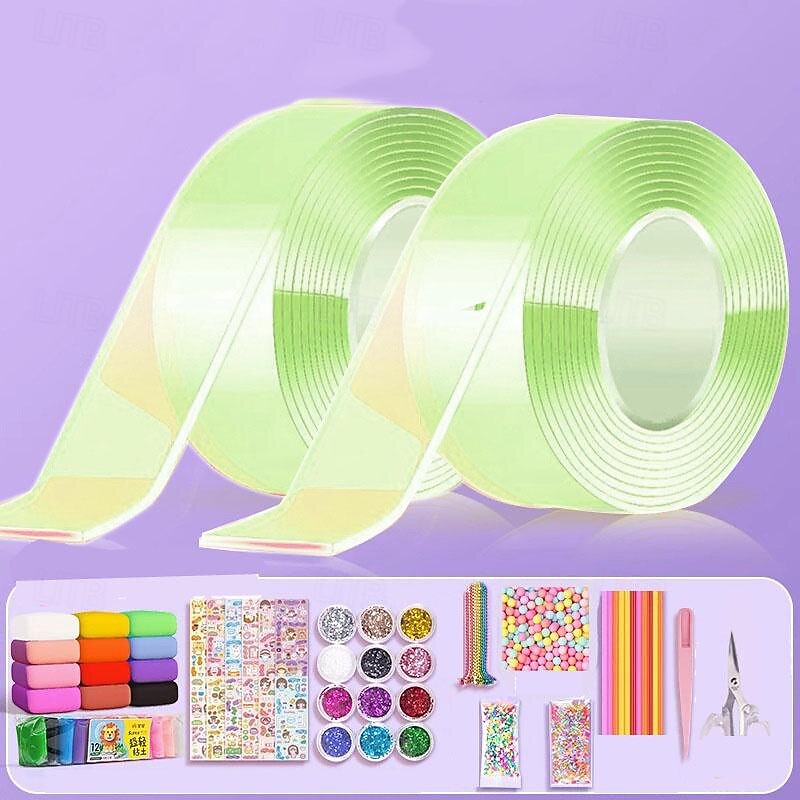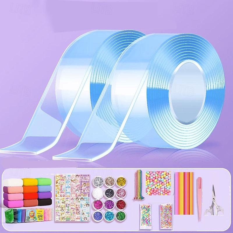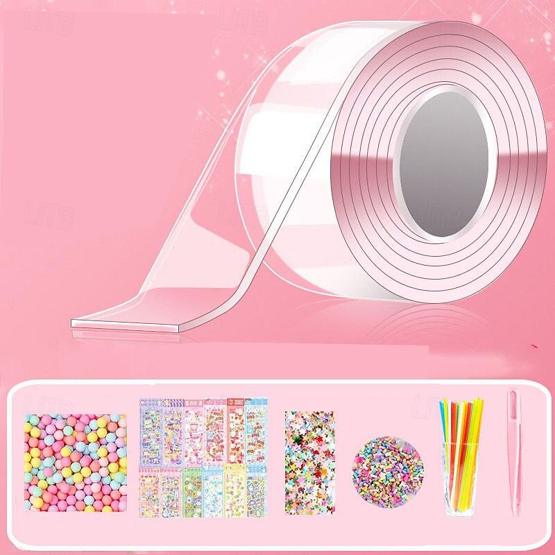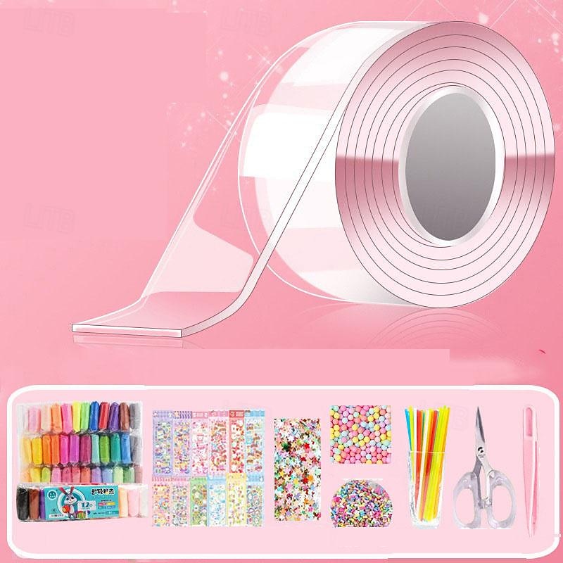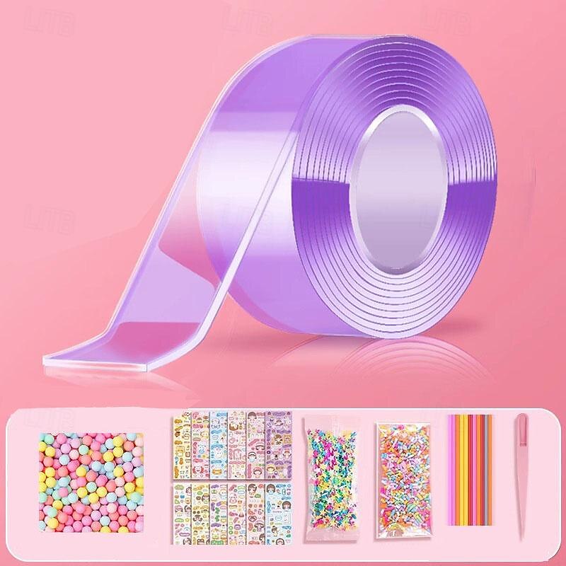 HOT ! Nano Adhesive Squeezing Blowing Bubble Decompression Sticky Rice Adhesive Double-Sided Adhesive DIY Nano Tape Set