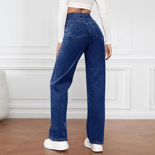 HOT ! Women's Straight Leg Jeans Tummy Control Trendy Pants High Waisted Stretchy Casual Denim Baggy Trousers with Pockets