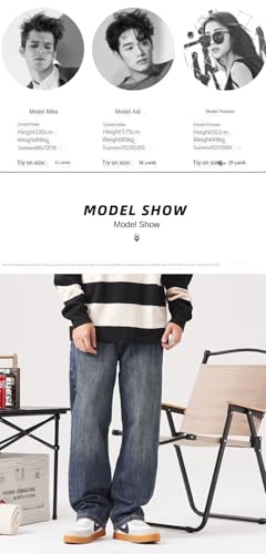 Jeans Pants Trousers Denim Loose and Comfortable Wide Leg Men's Washed Blue Hanging Casual Long Versatile Style 7