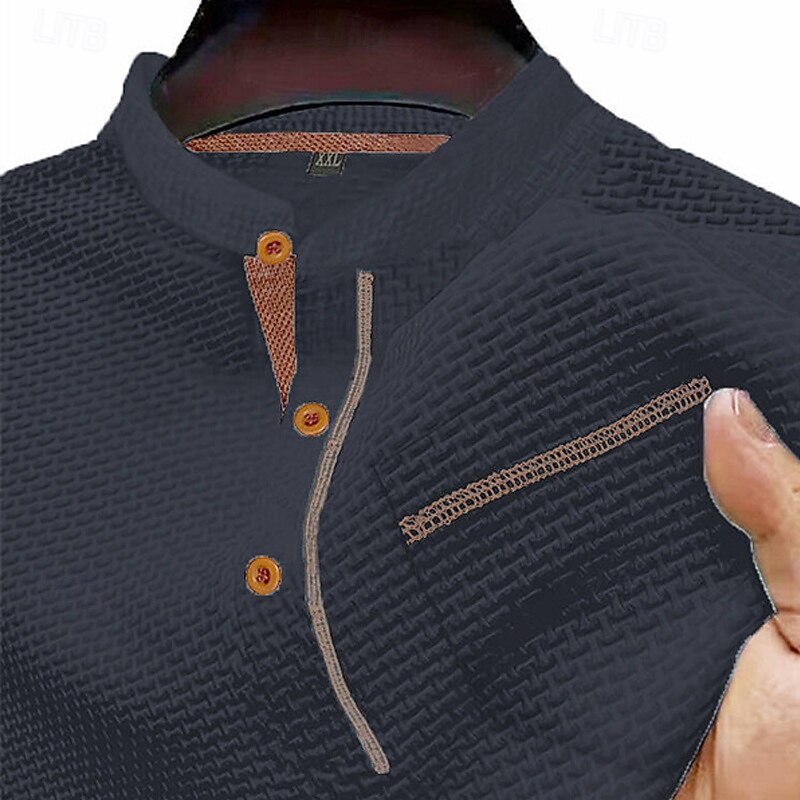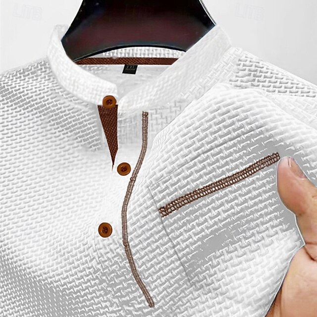 More information about Men's T Shirt Henley Shirt Tee Short Sleeve Shirt Short Sleeve Henley Summer Spring Patchwork Fashion Designer Basic Buttons Pocket Vacation Street Going out Black White Navy Blue Top Tee for Men