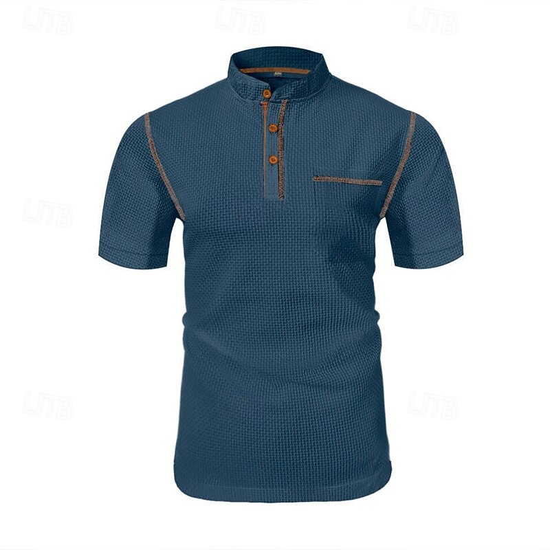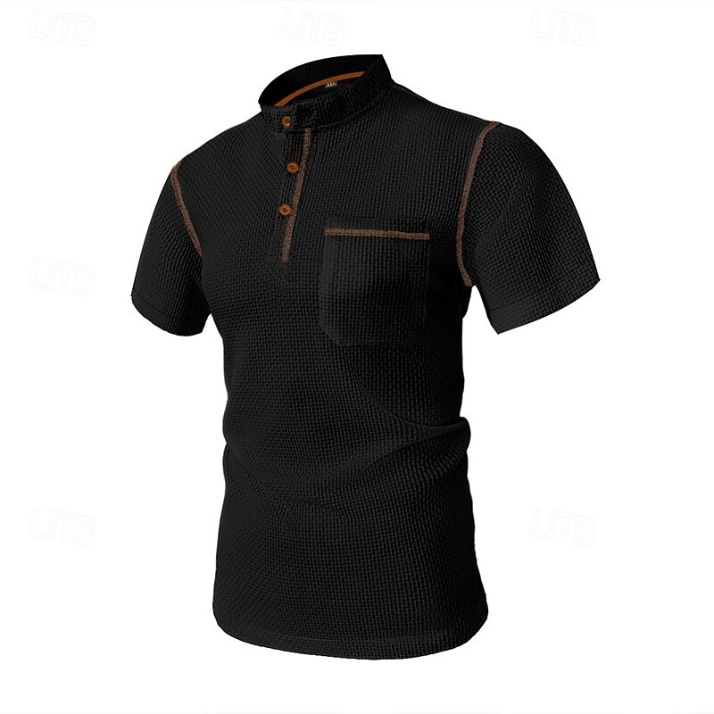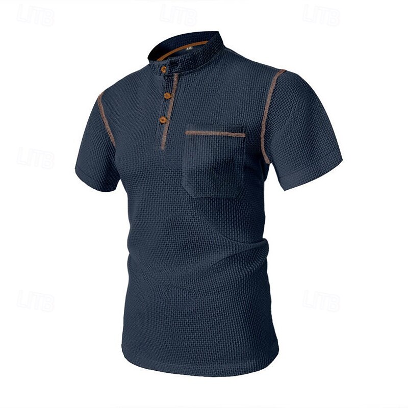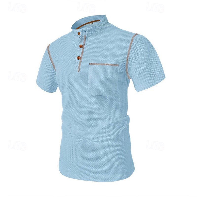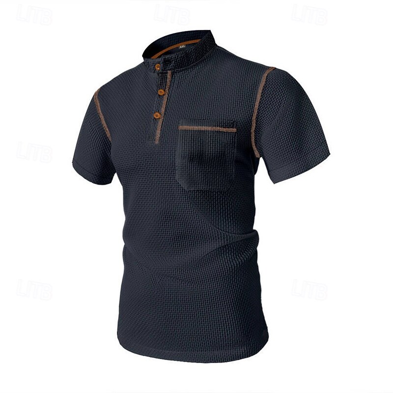 Highlights 1. Perfect for Spring and Summer seasons 2. Made of high-quality Polyester fabric 3. Featuring short sleeves for a comfortable fit 4. Specifically designed for Men 5. Classic and versatile Basic style 6. Henley Shirt is the tops type 7. Ideal for Vacation wear 8. Stylish button and pocket design details