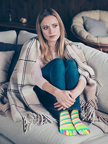 More information about SATINIOR 6 Pairs Rainbow Women Toe Socks Full Finger Socks Separated Cotton Stocking Colorful Stripe Stocking for Women Men