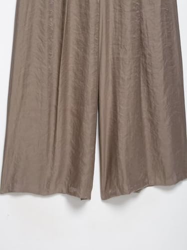 More information about Women's Flowy Satin-Texture Wide Leg Pants with Belt and Pockets, High Waisted Zipper Closure Trousers