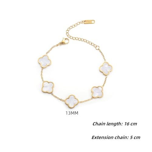 • Fine craftsmanship: The white four-leaf clover bracelet is made of high-quality titanium steel and plated with 18k gold, ensuring it does not fade and maintains its lustre over time. The bracelet's chain is thickened to prevent breakage. The upgraded double-sided design allows you to move your wrist freely, and the bracelet will remain as beautiful as ever.