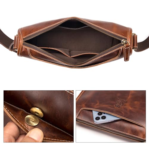 • Genuine Leather: Hand-crafted from top-quality cowhide leather, our single shoulder bag combines rugged durability with a retro style that projects sophistication and enduring quality for men and women