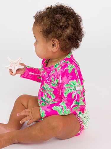 RuffleButts Baby Girls UPF 50+ Sun Protection Tropical Print Long Sleeve One Piece Rash Guard Swimsuit with Zipper 1