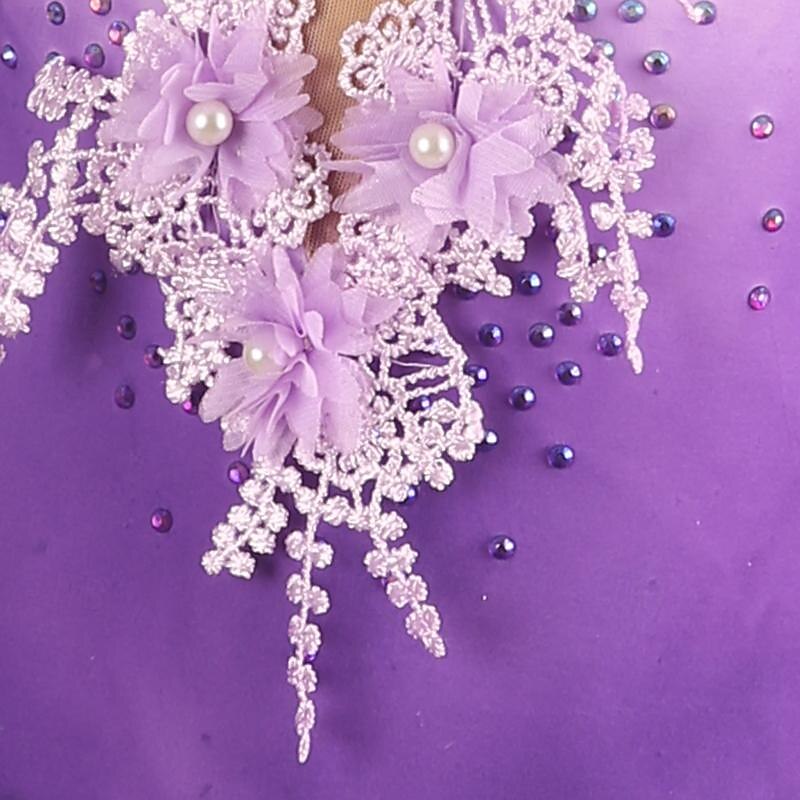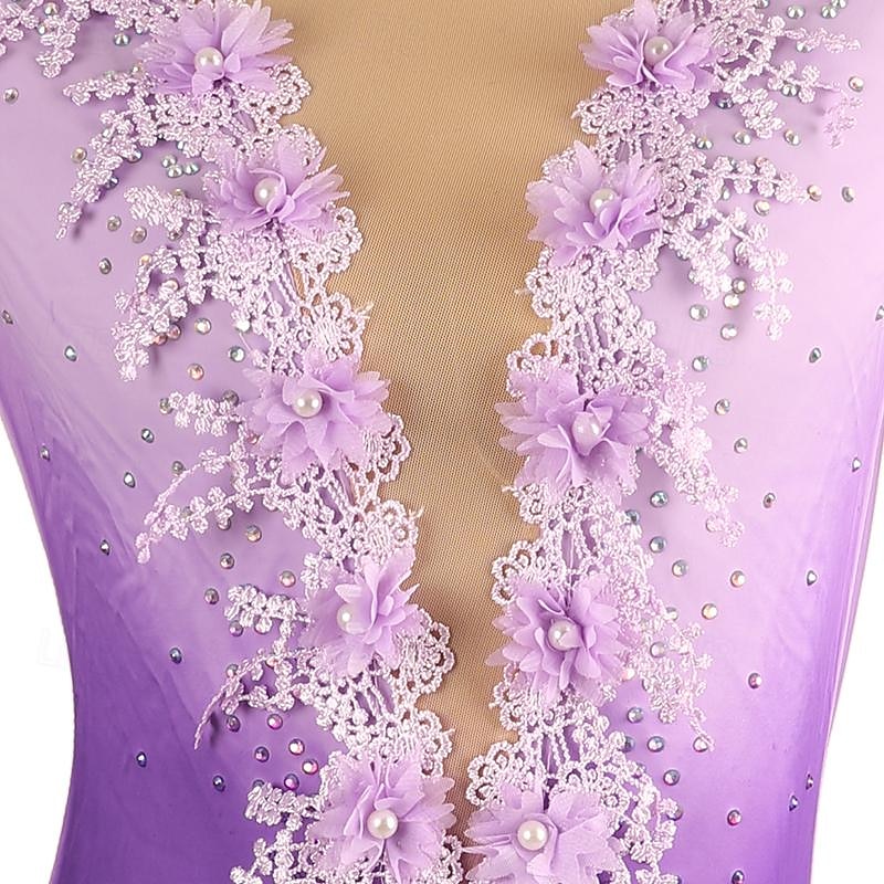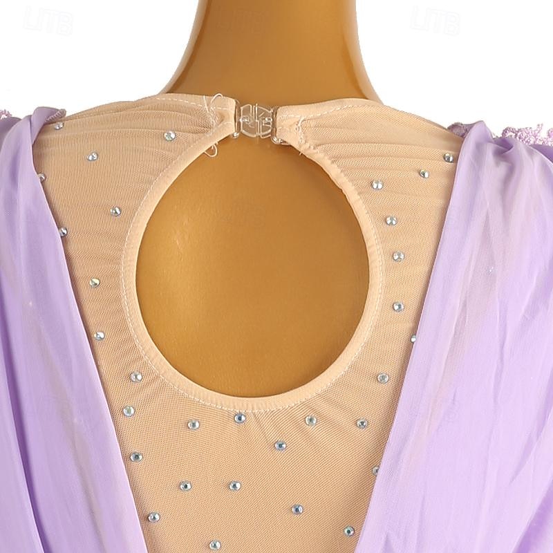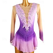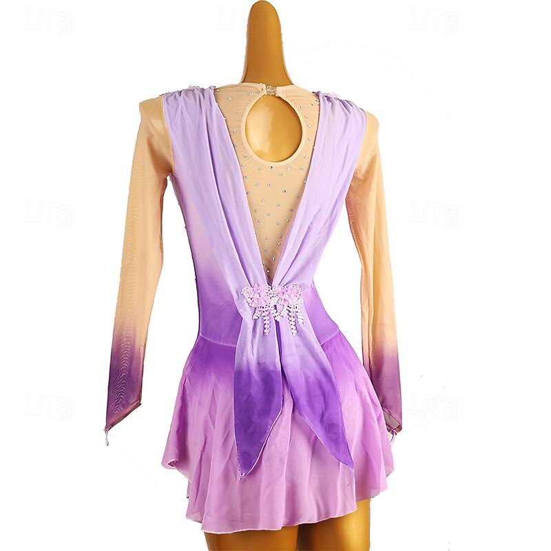 More information about Figure Skating Dress Women's Girls' Ice Skating Dress Light Purple Patchwork Open Back Mesh Spandex High Elasticity Training Practice Professional Skating Wear Classic Crystal / Rhinestone Long Sleeve
