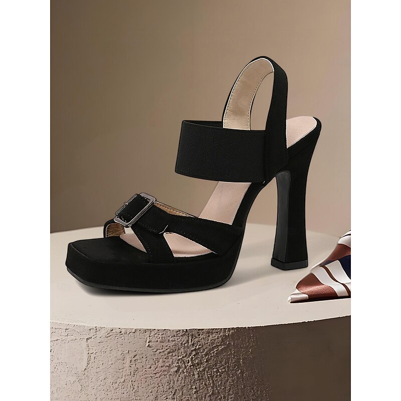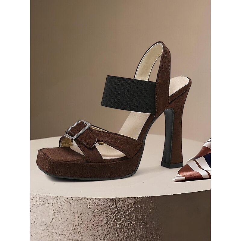 Highlights - Luxurious suede upper for a stylish and sophisticated look - Synthetic leather lining for added comfort and durability - Chunky heel design for stability and support - Open toe style for a trendy and chic touch - Rubber outsole for traction and durability