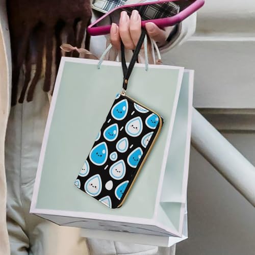 Women's Wallet Long Bifold Women's Clutch Raindrop Pattern Printed Wristlet Wallet 7.8 * 4.1 * 1.4 Inches with Wristlet 7