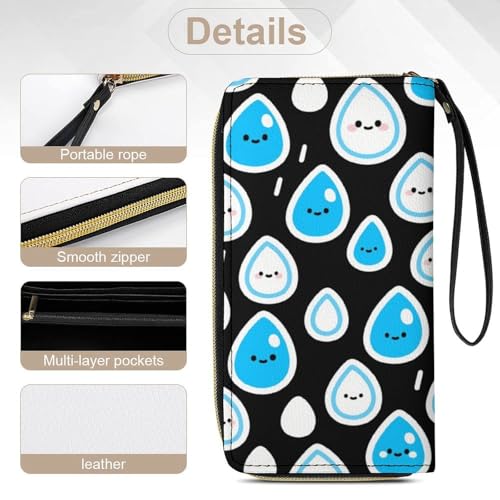 Women's Wallet Long Bifold Women's Clutch Raindrop Pattern Printed Wristlet Wallet 7.8 * 4.1 * 1.4 Inches with Wristlet 5