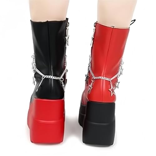 • Style & Design:These platform boots feature a bold, edgy design with chunky heels for a height boost. Adorned with star shaped pendants and chains, they add a touch of punk and gothic charm, perfect for making a fashion statement
