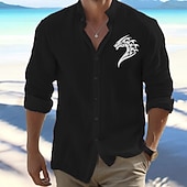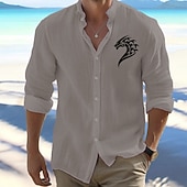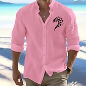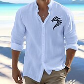 Highlights [Fabric] This men's shirt is crafted from lightweight and breathable cotton, offering a comfortable feel perfect for the mild temperatures of spring and fall. [Fit] Featuring a regular fit, the shirt offers a classic and relaxed silhouette that suits a variety of body types, providing ease and comfort in wear. [Design Highlights] The shirt stands out with its tribal-style dragon emblem printed on the upper left chest, adding a unique and bold touch. The standing collar and long sleeves contribute to its versatile style, allowing for a polished look that can be dressed up or down depending on the occasion. [Occasions] Ideal for daily wear, vacations, and outdoor activities. Whether you are heading for a casual outing or need something stylish for semi-formal events, this shirt is your go-to option, offering a laid-back yet fashionable appearance. [Size Range] Available in a variety of colors like White, Black, Orange, Pink, Light Blue, and Light Grey, the shirt comes in sizes S, M, L, XL, 2XL, and 3XL, catering to a wide range of preferences and body shapes.