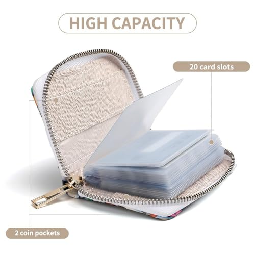 Brand: EVLTBVVRTColor: Color(568)Material: Faux LeatherPattern: CartoonClosure Type: ZipperMaterial: The credit card holder is made of PU leather with elegant texture, soft and comfortable to touch, wear resistant and durable. The internal translucent PVC card pages for easy find and read card information, helping you quickly find the card you needLarge Capacity: The card holder measures 4.5 x 6.3 inch. Slim pocket design perfect to fit in your pocket and wallet. It designed with 20 card slots that can hold your credit card, ID card, name cards, etc. 2 coin pocket for storing folded cash and moneyZipper Wallet: Zipper closure design, smooth opening and closing, providing unique and elegant protection for your credit cards. It can keep your cards or cash organized and secure, and Ensures easy access, Perfect for travel, work, office, party, shopping, dating, etcFashionable Design: A variety of attractive and elegant prints on the small wallet create a classic and stylish look. It is a beautiful accessory for daily use, adding a touch of fashionable to any outfit and making you the fashionable focus of the crowdPerfect Gift: The simple, practical and charming wallet, exquisite appearance with excellent workmanship, make it is practicality and aesthetics gift for friends and parents on Valentine's Day, Mother's Day, Christmas, Thanksgiving and birthdays Perfect for everyday use. premium materials and excellent craftsmanship ensure long-lasting durability.