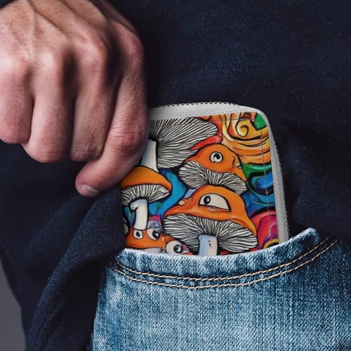 Portable Slim Wallet for Men Women, Pu Leather Credit Card Holder with 20 Slots Trippy Mushroom Art Card Coin Organizer Bag