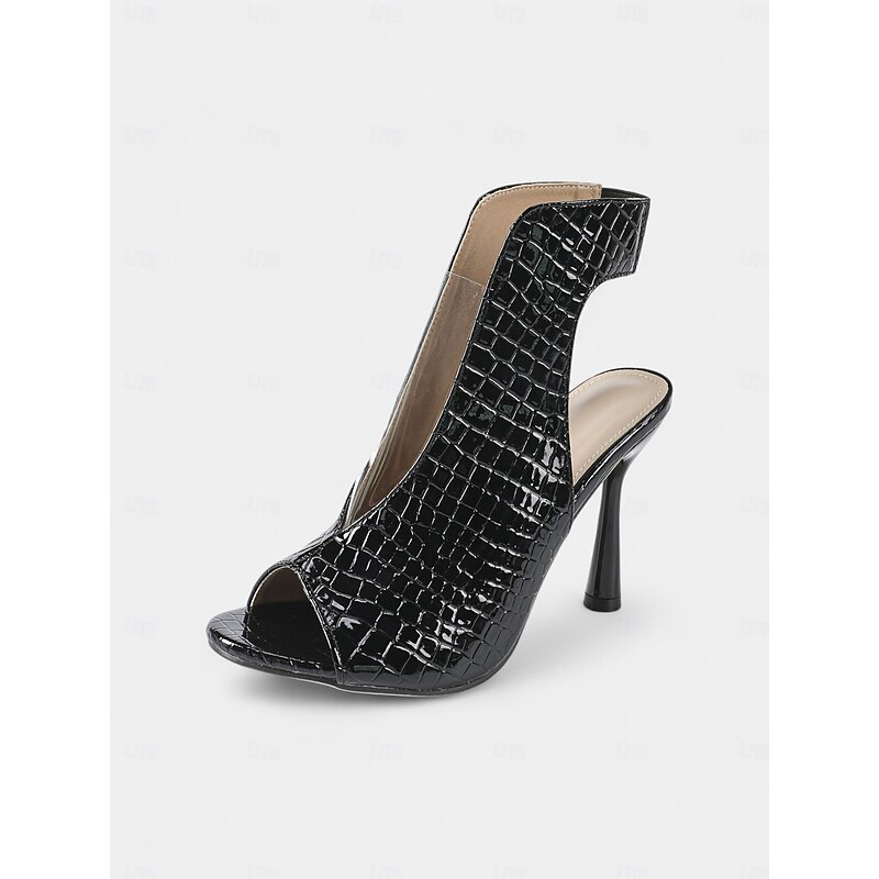 More information about Women's Black Croc-Embossed Peep Toe Stiletto Booties - Clear Panel High Heel Ankle Shoes for Nightlife Parties and Club Outfits