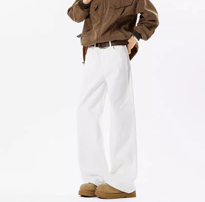 Men's Jeans Spring American White Denim Straight Wide Leg Long Pants for Men 2