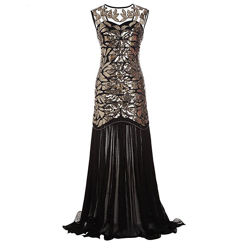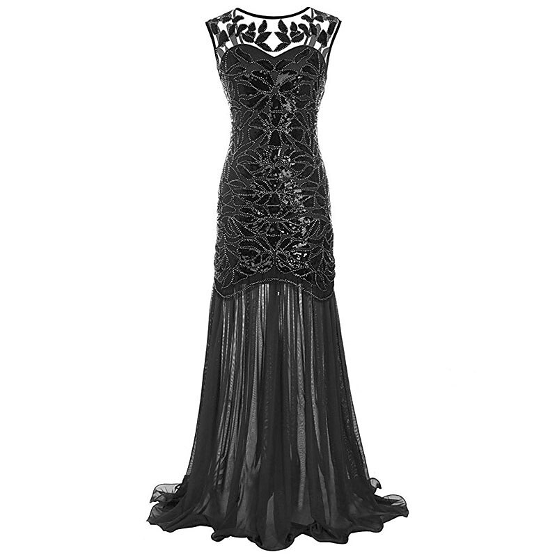 More information about Tuxedo Roaring 20s 1920s Cocktail Dress Maxi Flapper Dress Dress Party Costume Normal The Great Gatsby Charleston Wedding Guest Sequins Geometric A-Line Round Neck Fancy Dress Women's Wedding Party
