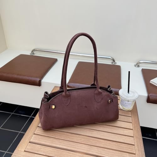 Lushandy Faux Suede Shouler Bag for Women Brown Purse 2025 Fall Trendy Tote Purse Bowler bag Top Handle Designer Hobo Handbag 2
