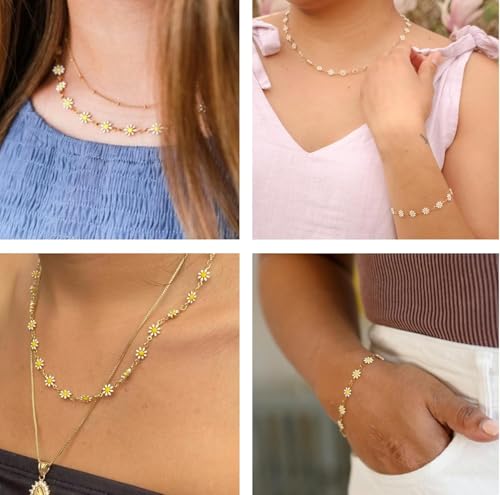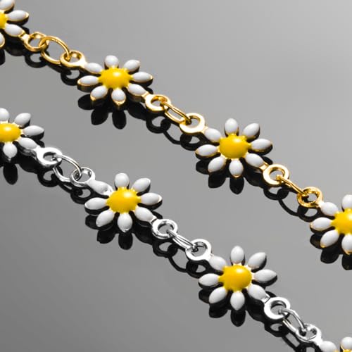 2M White Daisy Flower Link Chain – Enamel Metal Chain with 20 Lobster Clasps & 50 Jump Rings – DIY Bracelet,Necklace,decorating belts, handbags(Gold/Silver) 5