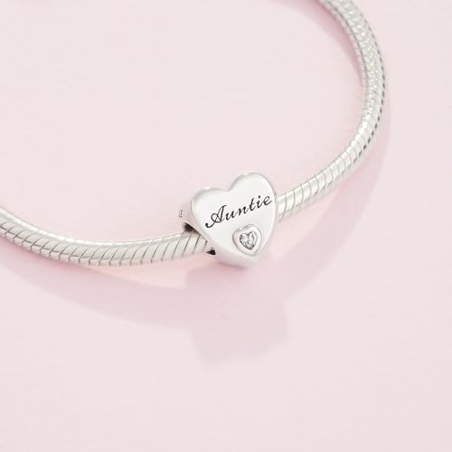 HOT ! PANDORA Auntie Love Heart Charm - Compatible Moments - Jewelry for Women - Gift for Her - Made with Sterling Silver & Cubic Zirconia - With Gift Box