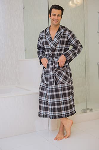 AMERICAN HEAVEN Men's Flannel Fleece Robe | Soft Cotton Shawl Collar Full Length Plaid Robe 6