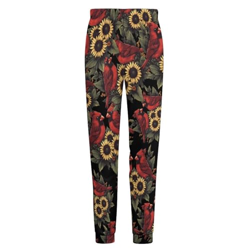 Cardinal Bird Sunflower Floral Men's Pajamas Pants Lightweight Sleep Lounge Pant Pjs Bottoms Casual Sleepwear 1