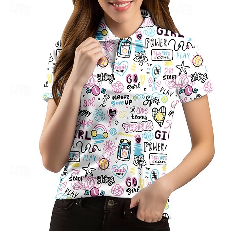 $23.99 - Women's Graphic Tennis Shirt Short Sleeves Print UPF50+ Quick Dry Tennis Golf Badminton Polo Collar Tee Tshirt Top White Pink Sky Blue Tennis Clothing 2025. Shop for cheap Women's Shirt online? Buy at lightinthebox.com on sale today!