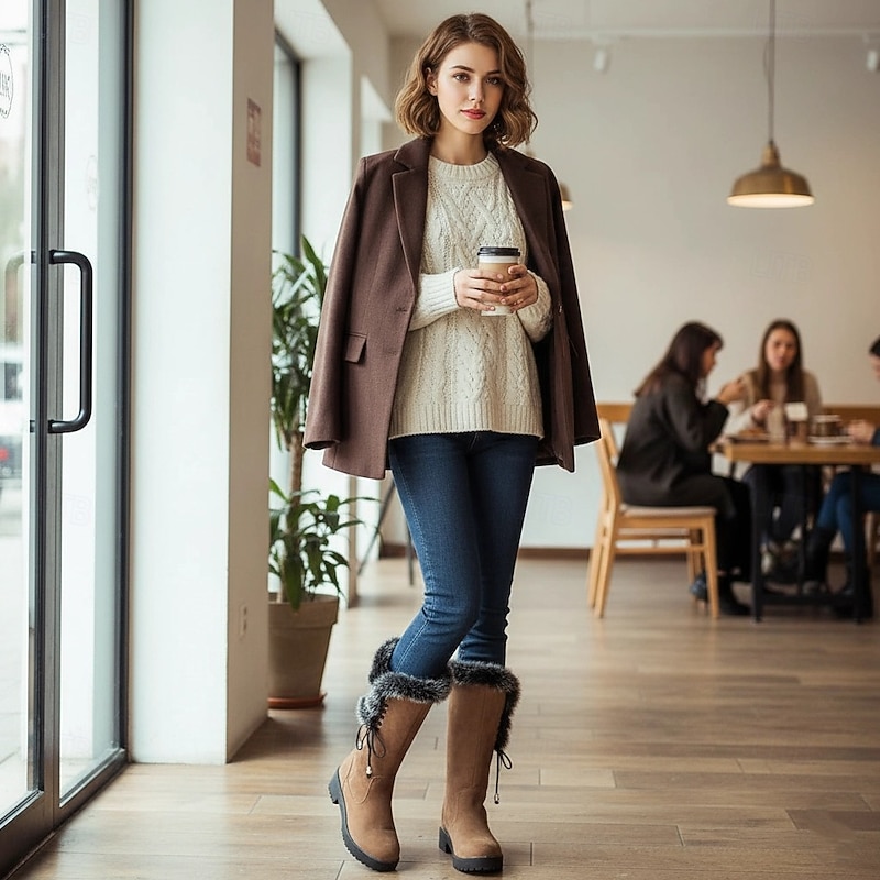 More information about Women's Black Faux Fur Trimmed Winter Boots - Warm and Stylish, Lace-Up Design, Non-Slip Sole, Ideal for Cold Weather and Casual Wear