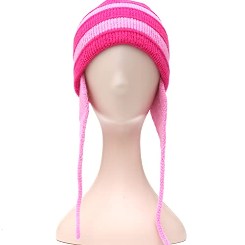 HOT ! Knitted hat Women Winter Peruvian Cover Ears Pink Striped Beanie Hat Sherpa Hats Knit y2k Halloween Cosplay Costumes