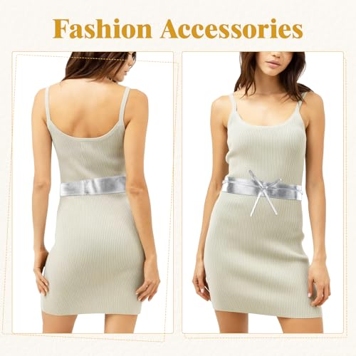 panthra Gold and Silver Corset Belt, 2 PCS Faux Leather Wrap Belts, Wide Gold Belts for Women, Easy to Clean, Fashion Bowknot Wrap Around Obi Belt for Dress 7