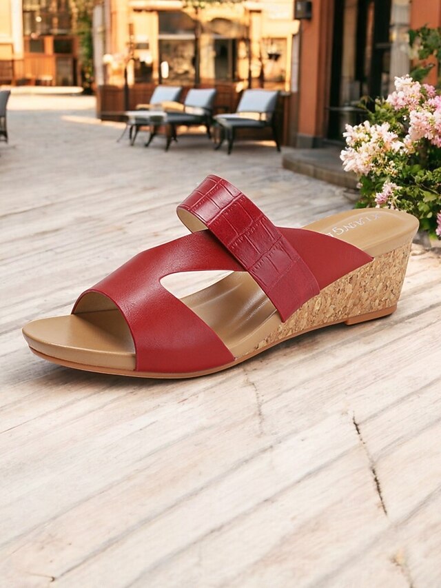 Highlights - Luxurious faux leather upper - Classic round toe shape - Durable TPR outsole - Stay ahead of the trends with stylish wedge sandals in 2024