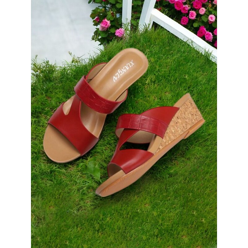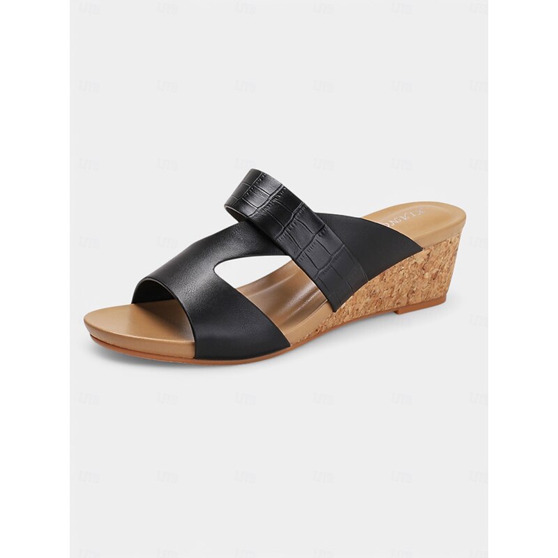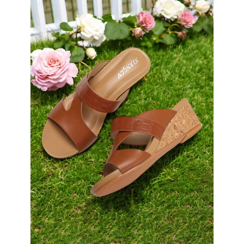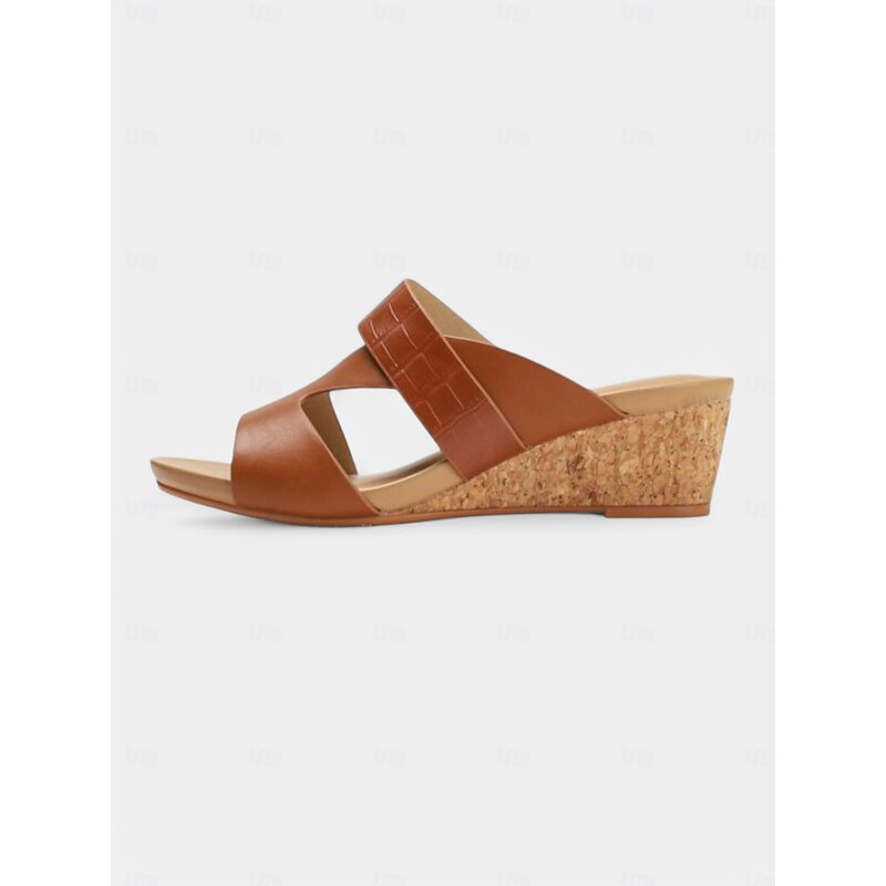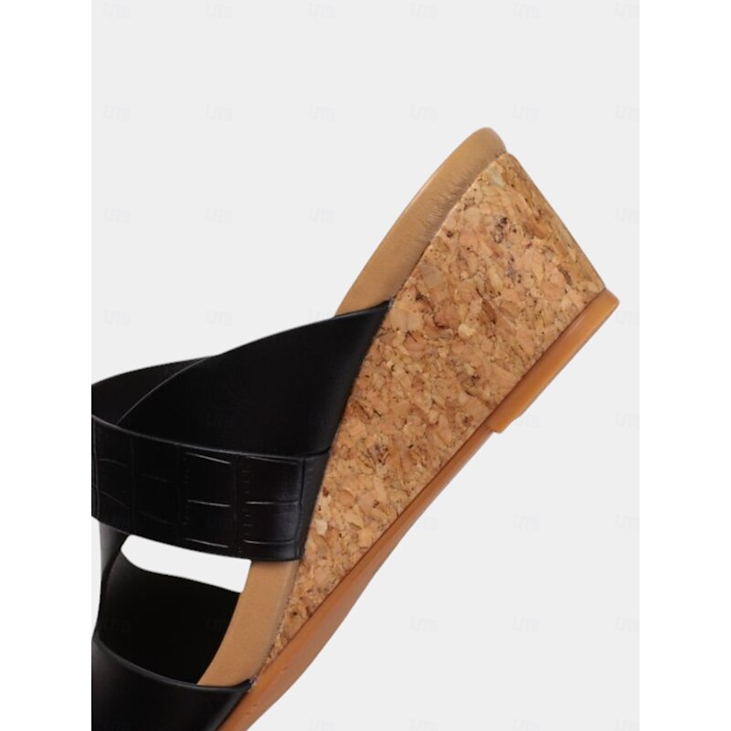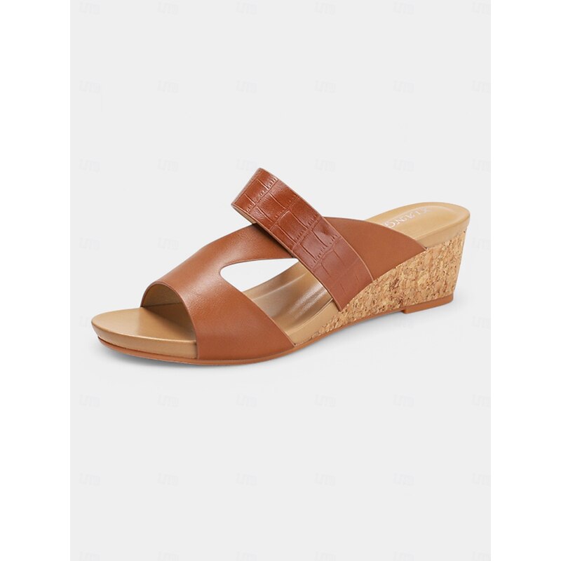 HOT ! Women's Brown Cork Wedge Sandals - Open-Toe Slip-On Summer Slides with Croc-Embossed Straps for Casual & Summer Wear