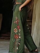 More information about Women's Wide Leg Pants Trousers Palazzo Pants Fashion Streetwear Full Length High Waist Flower Elastic Waist Drawstring Print Breathability Comfortable Street Daily Wear Going out Green Spring Fall