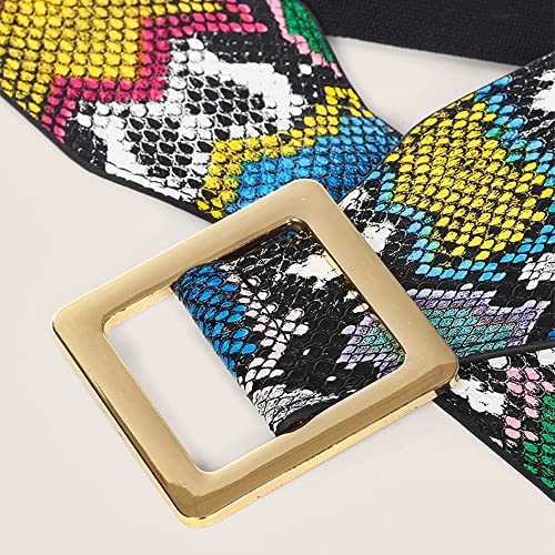 - Material: Made of Snakeskin printed pu leather, wide elastic dress belt and vintage golden buckle, tender and relaxing, vintage and durable.