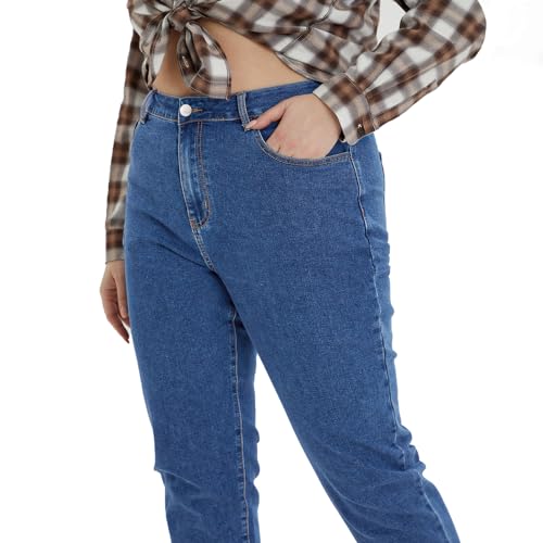 More information about KISSPLUS Plus Size Tapered Jeans for Women High Waist Loose Women Jeans Curvy Stretchy Black and Blue Denim Pants for Women