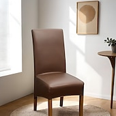 100% Waterproof Dining Chair Cover Black Stretch Chair Slipcover PU Leather High Back Chair Seat Cover Protector with Elastic Band for Dining Room,Wedding 21