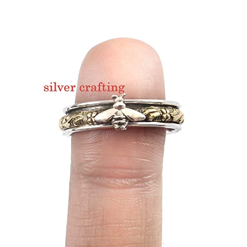 Fly bee Spinner ring Honey Bee Ring Yellow Spinning Band Fidget Spin Ring 925 Sterling Silver Ring Jewelry Bee Spinner 5