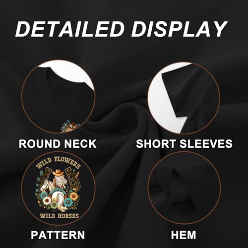 • Features:There is a girl riding a horse and stopping among the wildflowers on western shirts. The design incorporates of brightly colored wildflowers and grasses, making the girls cowgirl shirt appear cool