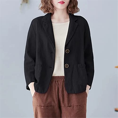 Womens Spring Summer Coat Cotton Linen Blazer Suit Cardigan Jacket Women Casual Solid Color 3/4 Sleeves Jackets 3