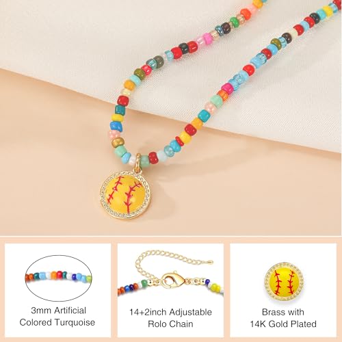 Softball/Soccer/Volleyball/Basketball/Football Colorful Beaded Necklace Gifts for Girls Women, Sport Accessories Pendant Jewelry 14+2 Inches 4