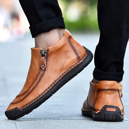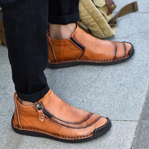 Men's Outdoors Leather Driving Classic Handmade Mid-Top Ankle Casual Comfortable Walking Loafers Slip on Shoes 7