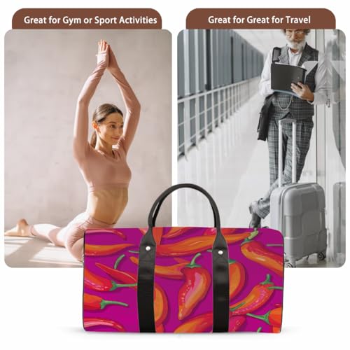 HOT ! Chili Peppers Print Sports Tote Gym Bag for Men & Women, Water Resistant Foldable Travel Duffel Bag, Lightweight Carry-On Weekender Overnight Bag for Workout Hospital
