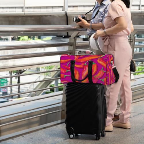Chili Peppers Print Sports Tote Gym Bag for Men & Women, Water Resistant Foldable Travel Duffel Bag, Lightweight Carry-On Weekender Overnight Bag for Workout Hospital 6