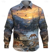 HOT ! Men's Animal Wildlife Nature & Landscapes Shirt Button Up Shirt Long Sleeve Ethnic Vintage Retro Outdoor Camping & Hiking Hunting Spring Fall Turndown 3D Print Linen Like Shirt Blue