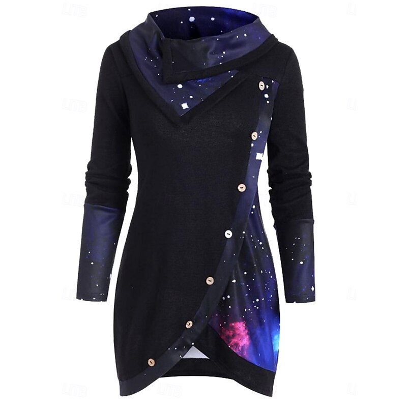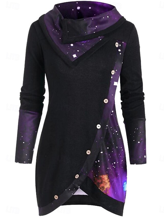 More information about Women's Blouse Ombre Stylish Casual Long Sleeve Cowl Neck Long Tops Daily Buttons Print Black Purple Green Spring Fall Winter