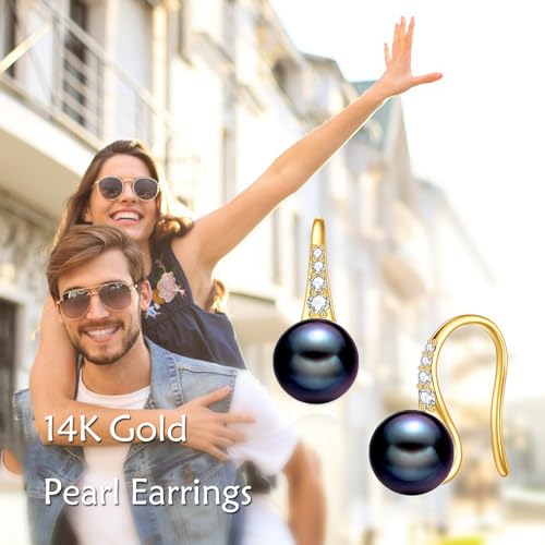 14K Gold Freshwater Pearl Earrings Solid Gold Dangle Drop 8 MM Pearl Earrings Jewelry Gifts for Women (drop) 5